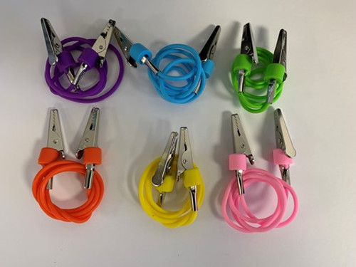 Clip holders intended to hold bibs for patients during a dental procedure. Each silicone clip holder is made with high-quality silicone for the cord and alligator clips. (Purple, Blue, Green, Orange, Yellow, Pink)